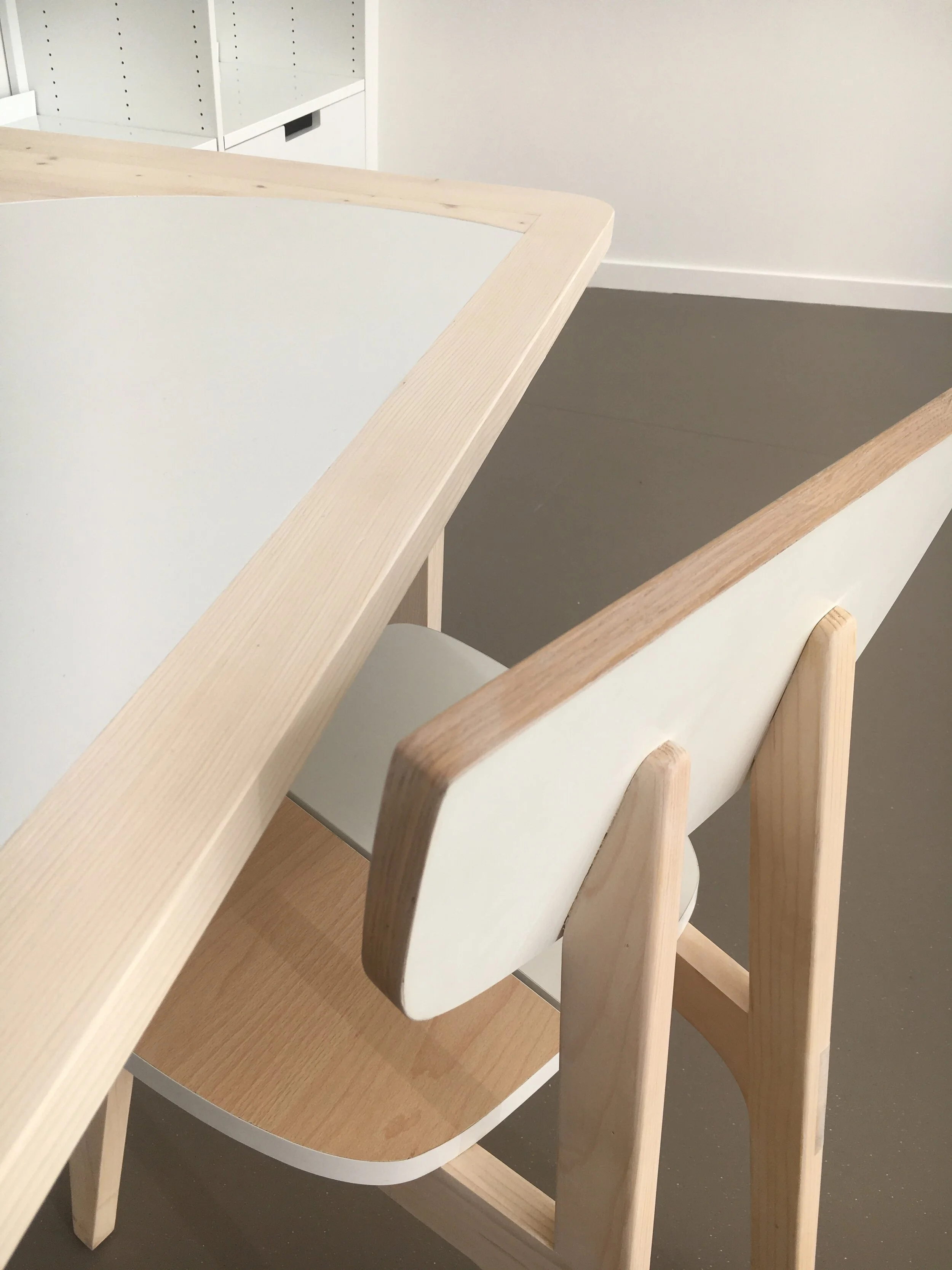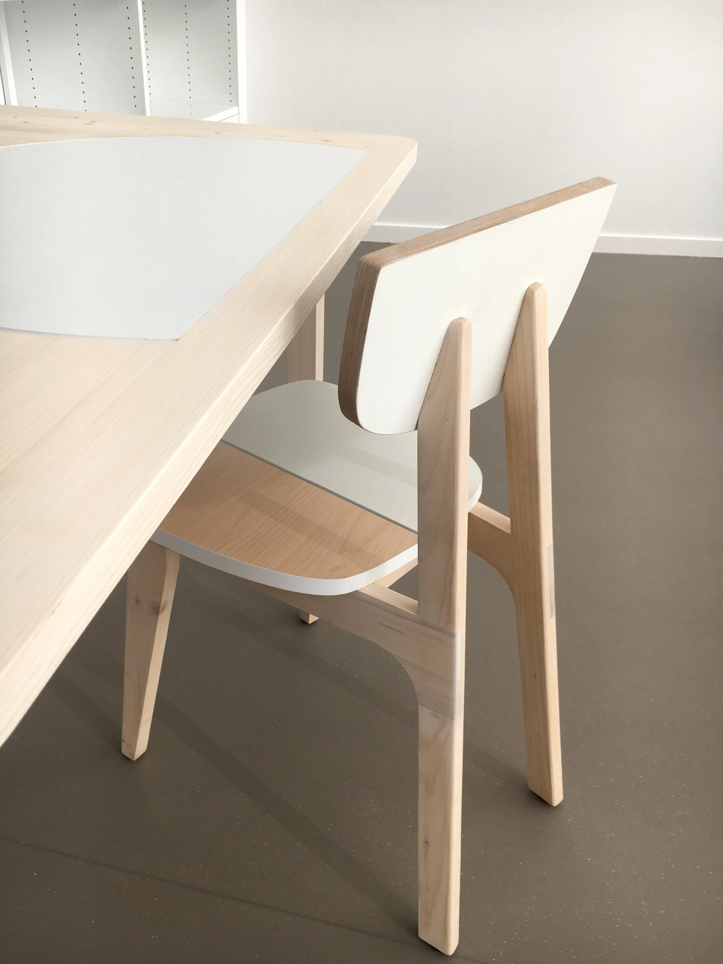 Matière de l’assise plateau de mélaminé issu d’anciens plateaux de bureaux