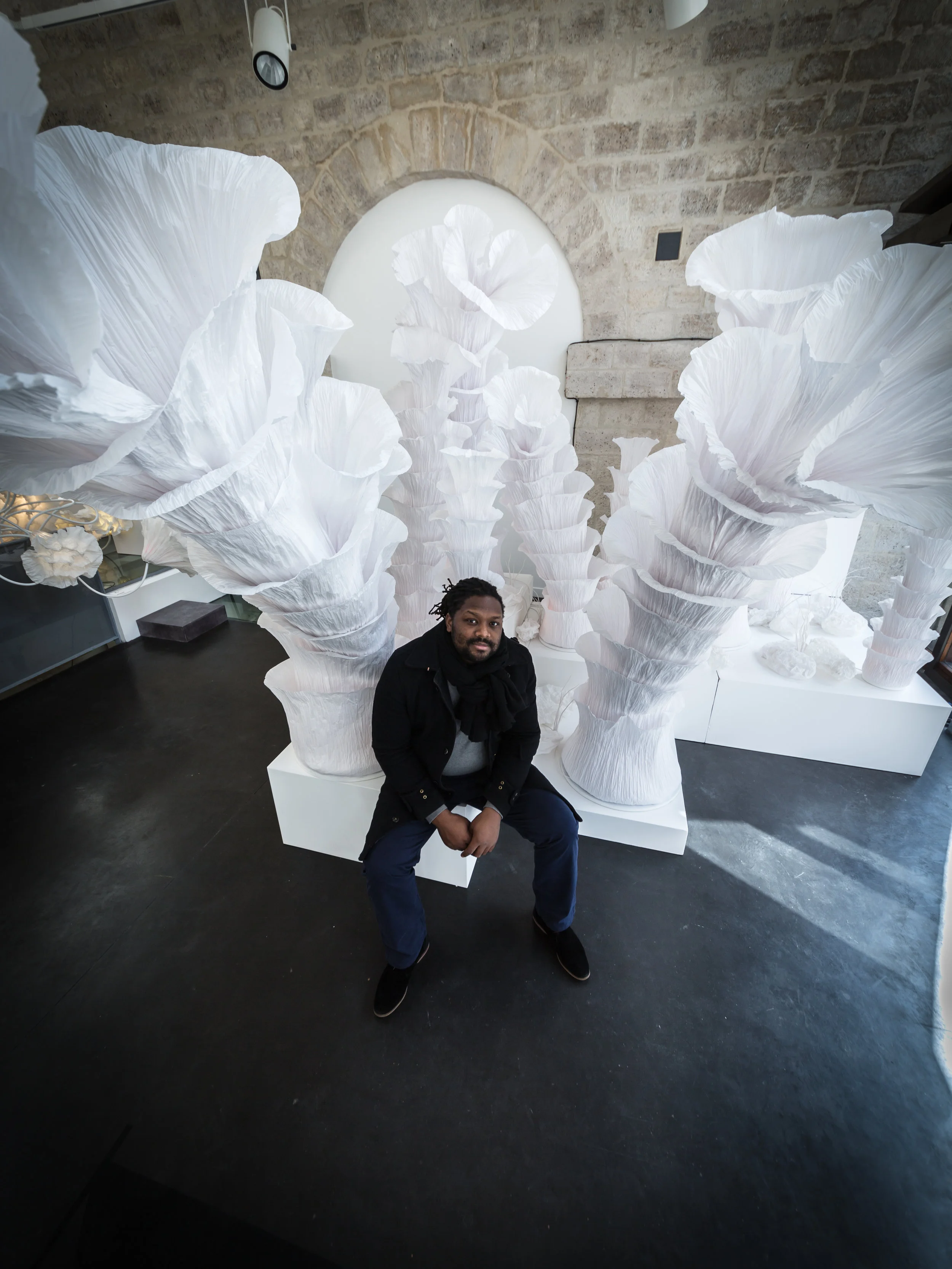 C’est à la Maison des Économies solidaires et innovantes (Exposition Recyclage à tous les Étages) que PAUSE* est tombé en amour pour les créations de Junior Fritz Jacquet. Ce magicien transforme le papier sulfurisé ou le craft déclassé en… poésie. Avec ses créations et mises en scène, ce designer sculpte le papier pour créer des émotions.